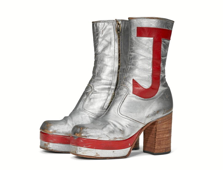 Unas botas plateadas de plataforma con sus iniciales -en la imagen-, un piano o un tríptico del artista Banksy son algunos del millar de objetos personales que el cantante británico Elton John subastará en febrero en la casa Christie's, en Nueva York, por un valor aproximado de diez millones de dólares. Los coleccionistas podrán adquirir en ocho ventas físicas o en internet, y en una velada especial programada para el 28 de febrero, ropa y otros objetos elegidos por «razones personales» por el artista, que se despidió de los escenarios en 2023.