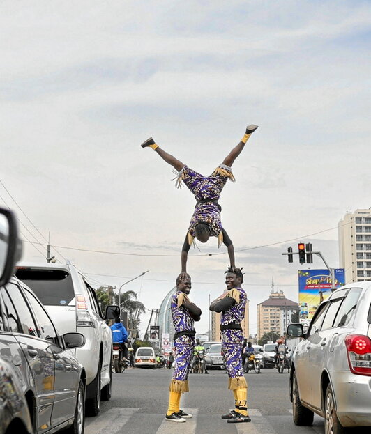 Akrobatak Nairobiko bidegurutzeetan