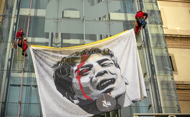Greenpeacek pankarta handi bat jarri zuen atzo Madrilgo Reina Sofia kanpoaldean, Picassoren “Guernica” ospetsua gordetzen duen museoan. Gazan su-etena eskatzen zuen pankartak, eta haur baten aurpegi odoldua erakusten zuen. Palestinako Hezkuntza Ministerioak jakinarazi zuen 625.000 ikasle baino gehiago eskolarik gabe geratu direla, eta gutxienez 4.551 ikasle hil eta 8.193 zauritu dituztela. Era berean, Israelgo bonbek dagoeneko gobernu-eskolen eta hezkuntza-eraikinen %90 suntsitu dituztela gogorarazi zuen.
