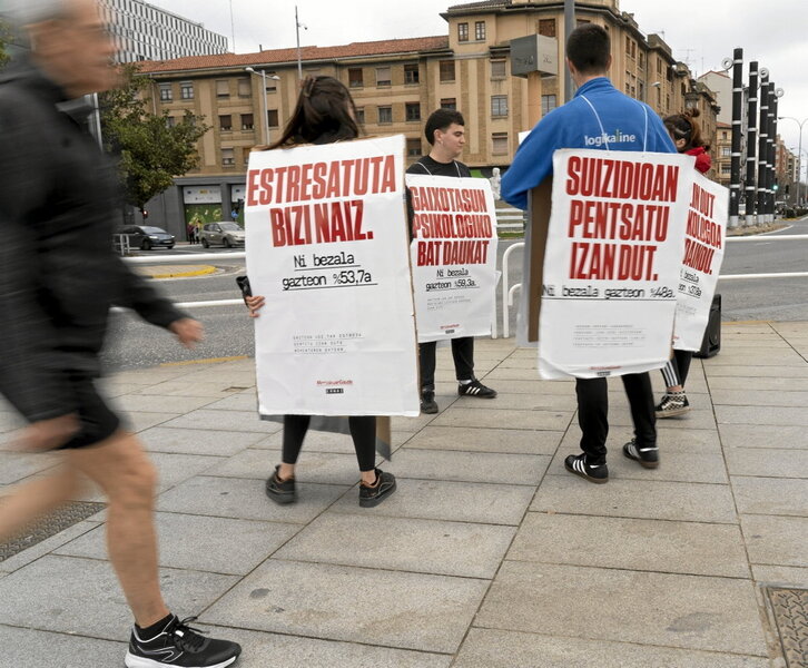 Dozenaka gazte bildu zituen Ernaik atzo, Iruñean, Osasunbidearen eraikinaren parean, arreta psikologikorako baliabide eskasak daudela salatzeko. Ilara luze batekin, itxarote zerrenda luzeen arazoa irudikatu zuten. Buruko osasun arazoek gazteei era berezian erasaten dietela ohartarazi zuten, «arriskuan» daudela, eta, iragarri zutenez, gai hau landuko duen dinamika berri bat jarriko dute martxan. Nafarroa eta EAEko gobernuak interpelatuko dituzte.