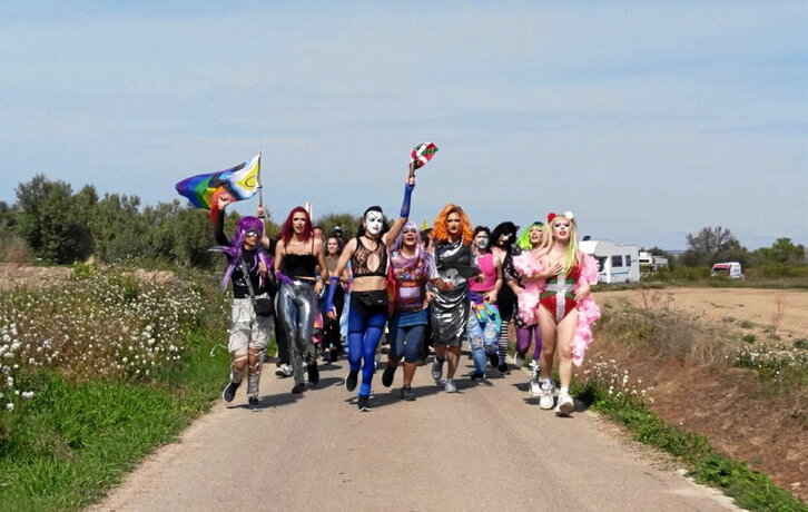 Kolorerik ez da falta Korrikan, baina Nafarroako trabestiek printza berezia eman zioten atzo. 730. kilometroaren zain zirenen artean, purpurina, lentejuelak, ileordeak eta urduritasun asko pilaturik zegoen. LGTBIQ+ ikurrak ez ziren falta. Mendillorriko Maruxak taldeko kideek lekukoa hartu zuten lehenik, Albina Stardust burlatarra eta hamarnaka lagun ondotik segika zituztela. Euskal trabestiak ere «harro eta euskararen alde» direla azaldu zuen kideetako batek.