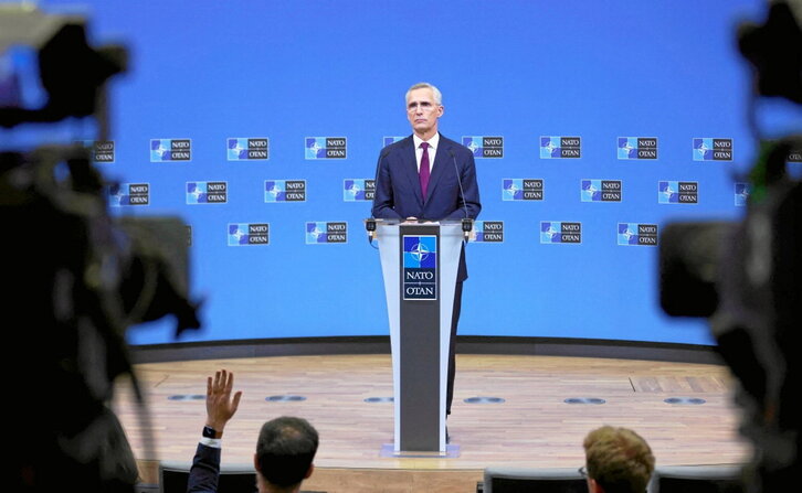 NATOk bere sorreraren 75. urteurrena ospatu zuen atzo, Bruselan, Ukrainari eskaintzen dion babesa berretsiz. Gerra hotzaren testuinguruan, erakunde militarra AEBen interesen neurrira sortu zen, eta gaur egun, Sobietar Batasuna eta bloke sozialista aspaldi desagertu baziren ere, AEBen mundu mailako hegemoniari eusteko funtsezko erakundea da. Hego Euskal Herriko lau herrialdeek ezezkoa eman zioten 1986an egindako erreferendumean eta, hala ere, NATOk Europan erabiltzen duen aireko tiro-eremu bakarra hementxe dugu.