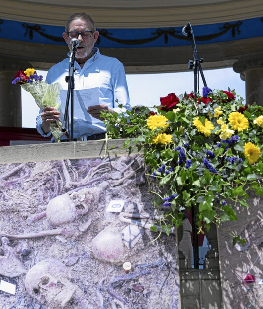 Las más de 3.700 víctimas mortales del franquismo en Nafarroa fueron recordadas ayer leyendo a viva voz su nombre y apellidos en la plaza del Castillo de Iruñea, en un homenaje organizado por las asociaciones que piden el derribo del Monumento a los Caídos. La lectura se prolongó por dos horas y corrió prácticamente en su totalidad a cargo de familiares de las víctimas. De esta manera, se quiso poner de relieve que «no son un número, son personas asesinadas en Navarra por los fascistas a los que homenajea Los Caídos», un edificio que «nos ofende y humilla».