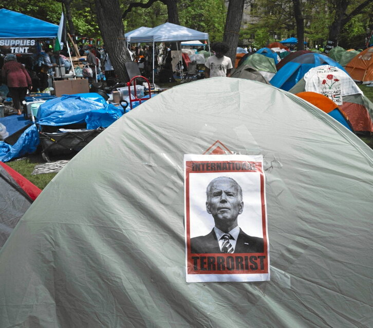 Unibertsitateetako protestetan salatu den bezala -eta kanpaldietan eskatzen zenetik oso urrun egon arren erabakia-, Bidenen oharrak agerian utzi du AEB ezinbesteko konplizea izan dela Israelek Gazan biztanle zibilen aurka egin dituen sarraskietarako. Kalean eta gizarte sektore zabal batean -gazteek batez ere- argi ikusten den konplizitate onartezin horren kontrastean, ordea, Washingtongo klase politikoa dago.