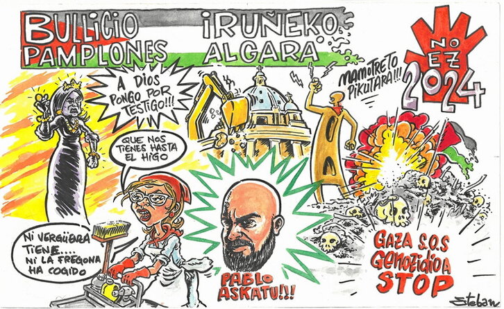 Iruñeko Peñen Federazioak sanferminetako pankartak aurkeztu ditu. Ohi bezala, jaia eta kritika sozial eta politikoa uztartzen dituzte. Aurten gehien agertzen diren gaiak Erorien Monumentua eta zentsura mozioa dira, Cristina Ibarrola bere fregonarekin eta Asironen itzulerarekin irudikatuak. Larunbat honetan, Peñen Egunean, pankartak udal plazan aurkeztuko dituzte casteller talde batek lagunduta, 12.00etan udal plazan bertan, eta 13.00etan zezen-plazan castella jasoko dute. Iruñeari «zezen usaina dario», egunetik egunera handiagoa.