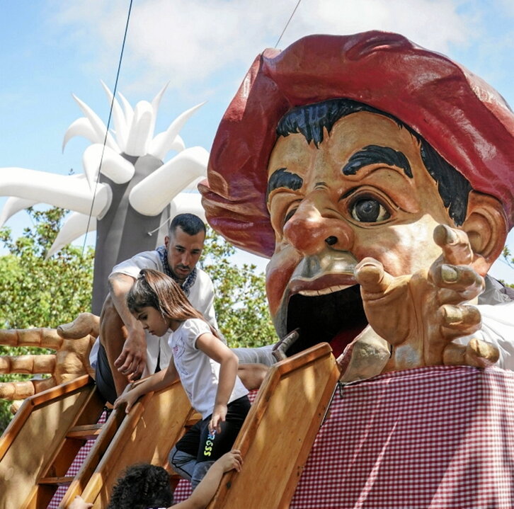 Desde hace 101 años, desde 1923, el Gargantua es una de las figuras más importantes y queridas de muchas de las fiestas en Gasteiz, incluidos los días de La Blanca. Ayer, decenas de niños y niñas dejaron que este personaje se los comiera en el parque de Arriaga.
