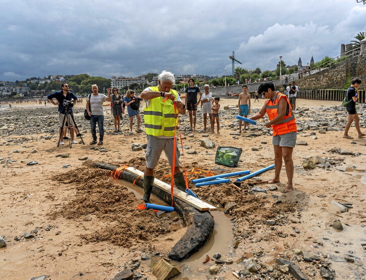 Donostiako Ondarreta hondartzan gabarra zahar baten zati bat berreskuratu du Ondare Zerbitzuak. Piezak 3,6 metroko luzera du, eta, Mertxe Urteaga Ondare Zerbitzuko arkeologoak atzo hondartzan bertan azaldu zuenez, hondo lauko gabarra batena dela uste dute, XX. mendera arte itsasgoran Igarako errekaren sakonera txikiko eremuetan nabigatzeko erabiltzen zena. «Normalean, ontzi horiek harea edo eraikuntza materiala garraiatzen zuten, desplazamendua organ baino errazagoa baitzen», zehaztu zuen.