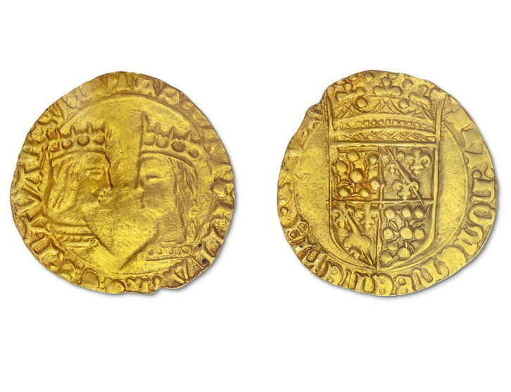El Museo de Nafarroa ha completado su rico fondo numismático con la adquisición de tres raras monedas navarras de época medieval. Se trata de un ducado del rey Francisco Febo, un ducado o real de oro de Juan de Albret y Catalina de Foix (en la imagen) y un grueso de Carlos II. Fueron adquiridas el 24 de junio en la subasta pública de la Casa Tauler&Fau de Madrid por 21.240 euros tras ejercer el derecho de tanteo de las administraciones públicas. El Museo trabajará en un formato de exposición pública de estas monedas ahora adquiridas para el año 2025.