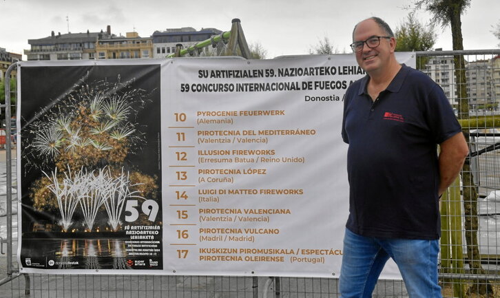 Santiago López es la quinta generación de esta empresa familiar, y el pasado martes atendió a GARA pocas horas antes de su tercera irrupción en los cielos donostiarras. Como anécdota, la entrevista se demoró media hora debido a la visita de dos agentes de la Guardia Civil, encargados de revisar que todo se encontraba en regla. Por la noche se desató una tromba de agua, pero no logró deslucir un espectáculo que cosechó muy buenas críticas.