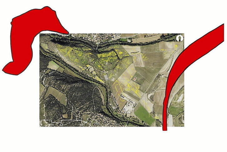 Y qué problema habrá para conservarlo en su totalidad, se pregunta cualquiera. A ver si el problema no va a ser solo presupuestario. El mercado de Iruña-Veleia también se descubrió extramuros por teledetección, y posteriormente se excavó. ¿Por qué se pone ahora en duda la excavación de un descubrimiento bastante más importante? El plano enseñado en la mencionada rueda de prensa, que indica las edificaciones romanas en amarillo, nos da varias pistas. Tanto por lo que muestra, como por lo que se ha decidido no mostrar.