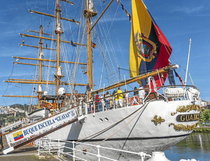 Berrogeita zazpi urte luze joan dira Erandioko Celaya ontziolak Guayas itsasontzia eraiki zuenetik eta, 1977. urte hartatik lehen aldiz, egun Ekuadorreko Armadaren eskola-ontzia den honek atzo zapaldu zuen sortzen ikusi zuen herrialdea. Bilboko Itsasmuseumeko kaian lehorreratu da Guayas eta Ekuadorreko 24 probintzietako baten izena hartu zuen belaontzi hau asteburuan zehar dohainik bisitatu ahalko da bertan, 11.00etatik 20.00etara. Igandean, gainera, tripulazioko kideez osaturiko orkestrak kontzertu berezia eskainiko du.