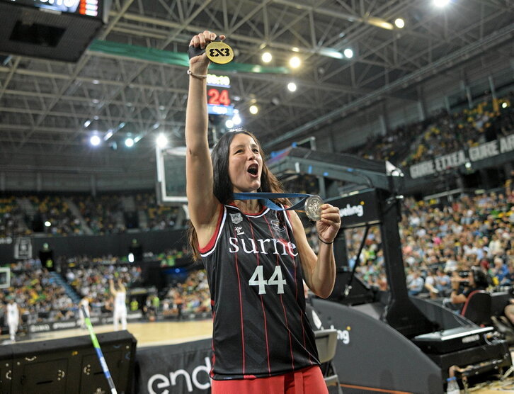 Gracia Alonso de Armiño está viviendo un verano de ensueño. Una canasta suya de espaldas en el último segundo le dio el billete para los Juegos Olímpicos de París en basket 3x3. La bilbaina se colgó la medalla de plata y se ha proclamado campeona de Europa en ese deporte en auge. Bilbao Basket le rindió ayer un homenaje antes del primer encuentro de Liga ACB entre el equipo bilbaino y el Breogán. «Me siento muy orgullosa de poder representar esta ciudad y este recibimiento tan caluroso, es un placer poder recibir este apoyo de los tuyos y de la ciudad», subrayó feliz.
