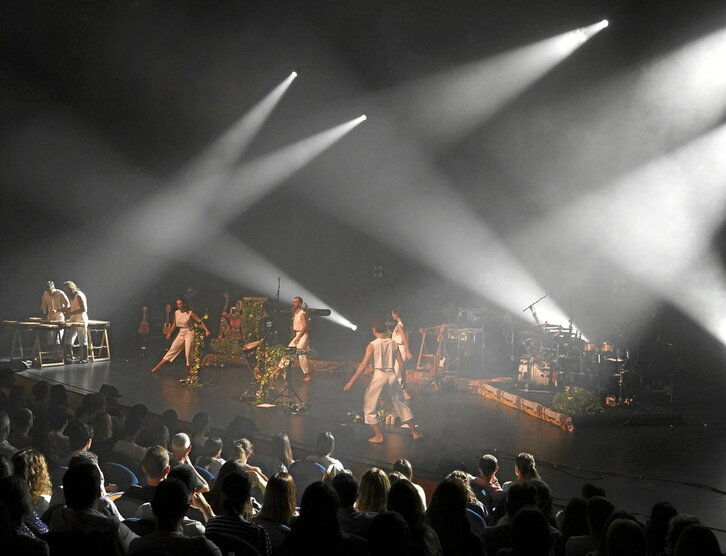 Crystal Fighters-en zuzenekoaz gozatu zuten atzo Kursaalean zaleek, otsailean taldekide baten osasun arazoek aukera eragotzi ondoren. Euskal musika tradizionalaren oihartzuna duten doinu elektronikoak -txalaparta erabili dute hainbat kantutan-; horixe da Nafarroan sortu eta azken urteotan Ingalaterran habia egin duen taldearen proposamena. “Ligth+” da faktoriaren azken emaitza eta lan honen aurkezpen biran geldialdi bakarra egin dute Euskal Herrian. «Erabateko alaitasunaren ospakizun neurrigabea» agindu zuten eta ez zuten hutsik egin.