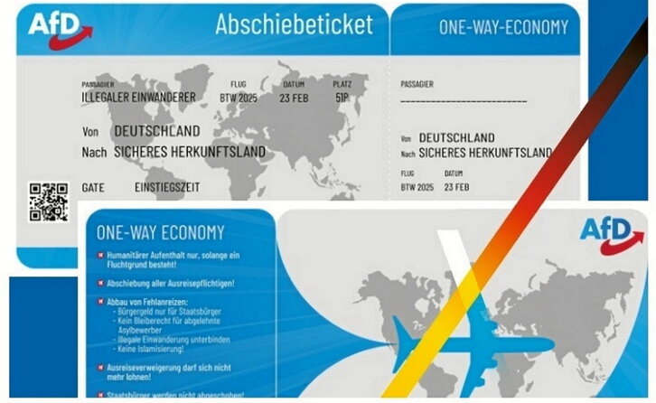 AfDk, alderdi neonazi alemanak, hautsak harrotu ditu eskuorri batzuk banatuz; hegazkin-txartel itxura dute eta bidaiariaren laukian «legez kanpoko etorkina» jartzen du. Azpian, «bakarrik berremigrazioak salba dezake Alemania» irakur daiteke. Poliziak ikerketa abiatu du «arraza-gorrotoa sustatzen duten susmoagatik». Marjinala zen alderdiak benetako indarra hartu du azken hamarkadan eta, oposiziotik bada ere, Alemaniako politika baldintzatzen ari da nazioarteko egoerak hauspotuta. Alemania ere garai arriskutsuetan murgiltzen ari da.