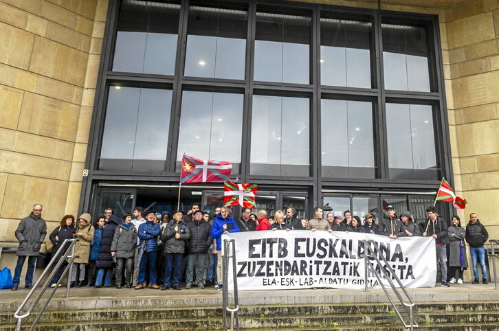 Euskarak Euskal Irrati Telebista publikoan duen lekuaz arduratuta, atzo elkarretaratzea egin zuten erabiltzaileek. Salatu zutenez, azken urteetan EITBko zuzendaritza postuetarako euskarazko C1 maila izatea eskatu arren, eskakizun hau bertan behera utzi eta 2024an hiru ardura postu esleitu zitzaizkien euskara eskakizuna betetzen ez duten hiru pertsonari. Euskarari merezi duen garrantzia emateko eskatu dute.