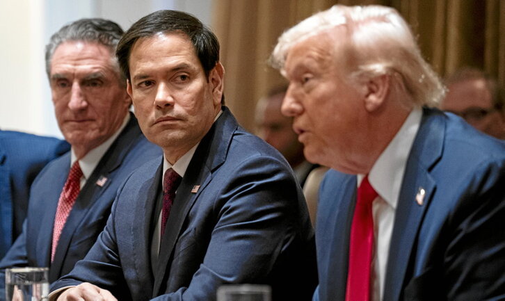 Ukrainako gaian Trumpen jarreratik urrun egon izan dira errepublikano gehienak historikoki, belatz militaristetatik hurbilago. Baina egoera berrian, birkokatzea ere gertatu da, Marco Rubio Estatu idazkariarengandik hasita. Municheko Segurtasun Konferentzian, JD Vance presidenteordeak europarrei errieta egiten zien bitartean, zubigile edo polizia onaren rola egokitu zitzaion Rubiori.