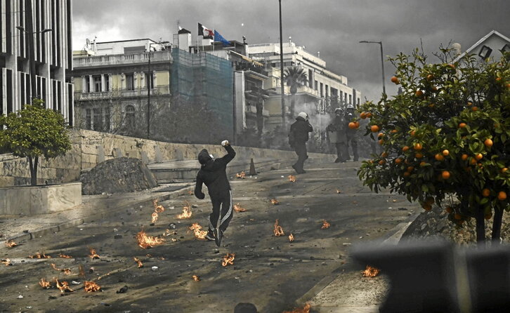 Ehunka mila manifestarik justizia exijitu zuten atzo, Atenasko Sintagma plazan, Parlamentuaren aurrean. Zenbait komunikabideren arabera, Greziako historiako mobilizazio handiena izan liteke. Manifestari batzuek molotov koktelak jaurti zituzten instituzioa babesten zuten polizien kontra, eta hiriaren erdiguneko zenbait tokitan istiluak izan ziren. Bi urte bete ziren atzo tren istripu batean 57 pertsona hil zirenetik, eta herritar ugarik pentsatzen dute Gobernua bere ardura ezkutatzen saiatzen ari dela.