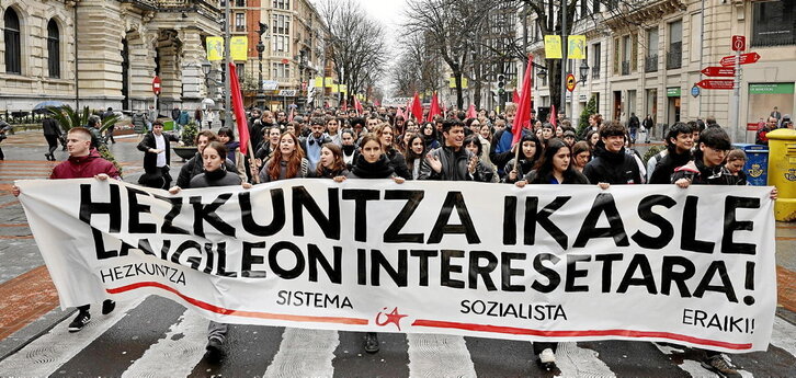 Ikasle Abertzaleek deituta, greba egin zuten atzo ehunka ikaslek Hego Euskal Herrian. “Gorakada erreakzionarioaren aurka eta ikasle langileen interesen alde” lelopean manifestazioak egin zituzten hiriburuetan. Beste aldarri batzuen artean, eredu duala «fartsatzat» jo zuten, hezkuntza «ikasle langileen interesetara» egotea eskatu zuten eta «hezkuntza sistema sozialista eraikitzearen» aldeko apustua berretsi zuten.