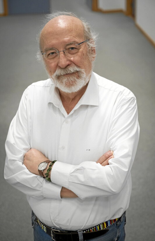 Juan Manuel García-Ruiz (Sevilla, 1953) es profesor Ikerbasque en el DIPC y director del ambicioso proyecto europeo Protos, donde estudian el rol de la sílice en el origen de la vida. Es cristalógrafo, además de un apasionado de la divulgación científica. El documental «Cristales Gigantes» y el espectáculo «La cristalización de la danza» son fruto de ello.