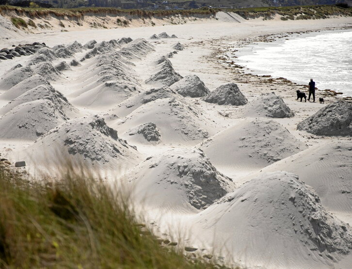 Guissenyko hondartzan (Bretainia) kamioiak joan-etorrian ibili dira azken egunotan: guztira, 40.000 metro kubiko harea eramango dute hara -momentuz erdia iritsi da; datorren urterako utzi dute gainerakoa-, hango dunan higadurak izan duen eraginari aurre egitearren. «Epe motzera, ezinbesteko operazioa da», azaldu du Udalak. Zehazki, bere esanetan, azken 20 urteetan beste horrenbeste metro egin du atzera dunak; urteko, metroa. «Itsasoaren igoera geldiezina ez da errudun bakarra; gizakiaren jardunarengatik ere gertatu da hau», ohartarazi du.