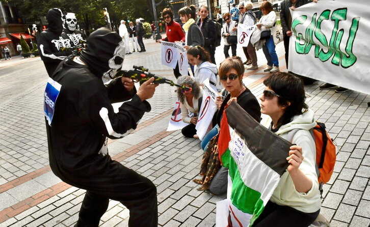 Argitan zentroak eta Kakitzatek performancea egin zuten atzo Bilbon, Diputazioaren jauregiaren aurrean, “Ez gaitezen gerraren eta industria militarraren konplize izan” lelopean. Pertsona batzuen fusilamenduak simulatu zituen ekintzaren helburua «Eusko Jaurlaritzak, gobernuek eta EBk industria militarraren alde egindako apustuaren ondorioak» irudikatzea zen. Genozidio bat, gerrak eta eskuin muturraren gorakada bizitzen ari garen garaian, industria militarraren alde egitea autosuntsiketaren aldeko apustua da.