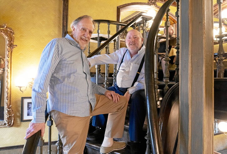 Eligen ellos un apartado del Café Iruña al que se accede por una escalera de caracol para estar tranquilos. Sonríen felices. Se lo están pasando bien con esto del premio Max. Tienen tanta química entre ellos que pronto convierte la entrevista en una suerte de dos contra uno frente al periodista, a quien desbordan y acaban contando lo que les da la gana. Ojalá todas las entrevistas fueran así.