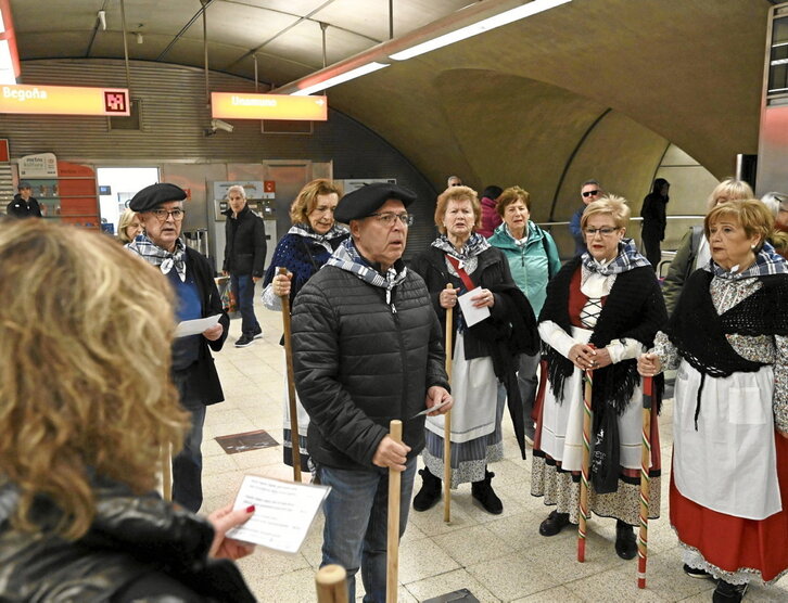 Atzo Santa Ageda izan zen, euskal egutegiko jai kuttun eta unibertsala. Abesbatza, haur eta kuadrillek biziarazten dute berau, Euskal Herriko txoko ugaritan, nork bere berezitasunekin -argazkian, Bilboko metroan ageri da taldetxo bat-, baita mundu zabaleko euskal etxeetan ere. «Zorion, etxe hontako denoi! Oles egitera gatoz, aterik ate ohitura zaharra aurten berritzeko asmoz» kantatuz ibili ziren, koplaka, eta naturaren erritmoan makilekin lurra joz, neguko solstizioaren ostean lurrari esnatzeko deika, urte berri emankorra ekar dezan.