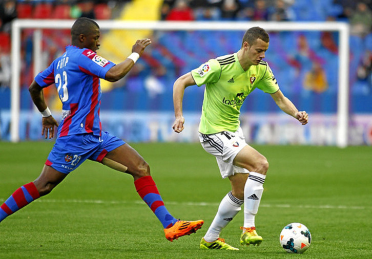 Cuatro minutos es lo que les costó a los visitantes morder el anzuelo de los de Caparrós, en el que estuvieron enganchados durante gran parte del encuentro hasta terminar desangrados por la táctica granota. El Levante supo a las mil maravillas llevar el encuentro a su terreno -por eso tiene 36 puntos-, mientras el cuadro osasunista iba a remolque de la dinámica anfitriona. Sí, tenía la pelota y combinaba, pero casi todo el tiempo en propio campo y sin apenas precisión cuando superaba la línea de la medular.