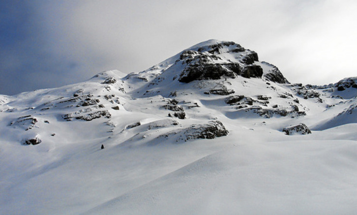 Bajo el roquedo que se desprende de Som Coi (2.05h, 2.050 m), en ascenso y giro ligero a la izda, avanzamos buscando el punto más alto de la pista de esquí, en ocasiones tentados por las ganas de afrontar el ascenso directo a cima que asoma por la derecha. Para una mayor seguridad dejamos las tentaciones y, a unos 300 m del final de la pista de esquí, seguimos ascendiendo girando poco a poco a derecha en dirección E, lo que nos lleva en dirección inequívoca hacia una pequeña antena, situada junto a la arista, con barranco incluido, y frontera natural con el valle que desciende a Lescun. Sin llegar a esta, que dejamos a la izda, nuevo giro a la derecha para ascender unos minutos más hasta llegar a una suave elevación con vistas nítidas de la cima (2h 30´, 2.225 m).