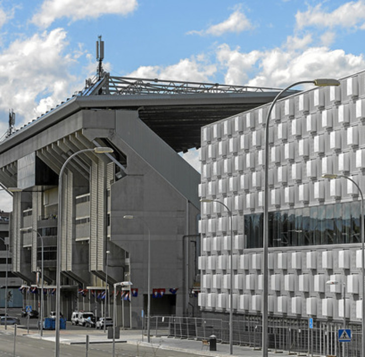 La zona del campo de Osasuna queda como monumento al despropósito de UPN. Algunos cálculos elevan la deuda rojilla a 60 millones, y otro tanto es lo que ha costado el Navarra Arena anexo (a la derecha), ni siquiera inaugurado. El Gobierno Sanz lo «vendió» con la excusa de los éxitos del San Antonio, hoy desaparecido, cuando era evidente que resultaba excesivo, un capricho megalómano. Con el descenso, seguramente en muchos partidos los 10.000 asientos del Arena bastarían para ver... a Osasuna.