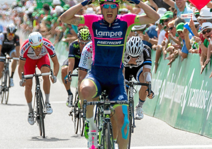 Una montonera en la última curva, a 300 metros de la meta, redujo el grupo de candidatos a media docena. Mientras Mark Cavendish se ponía en pie entre el amasijo de bicicletas, Modolo, Sagan y el alemán Degenkolb salieron en busca de la victoria. El italiano, de 26 años, firmó su séptimo triunfo de la temporada tras los 184 kms entre Ossingen y Büre y lo consideró el más importante de su carrera. Así se lo dijo a la televisión suiza, a la que también comentó que «el hombre a batir era Sagan».