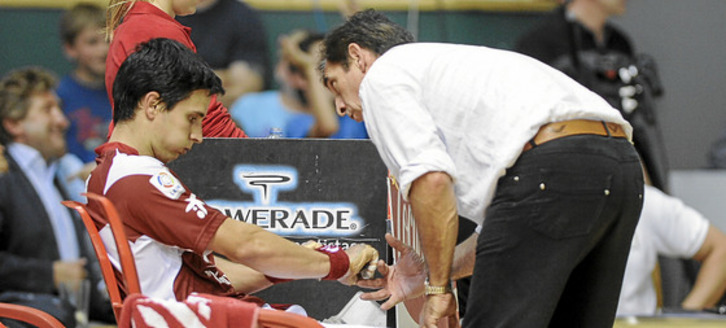 Bajo la atenta mirada de su padre Julián Retegi, el delantero de Aspe se ejercitó durante una hora junto a Jon Jaunarena, que llegó también bastante justo de manos tras su partido del cuatro y medio ante Barriola. Los saques y los restos fueron uno de los aspectos que más trabajaron, además de pelotear un poco para comprobar el estado de su derecha.