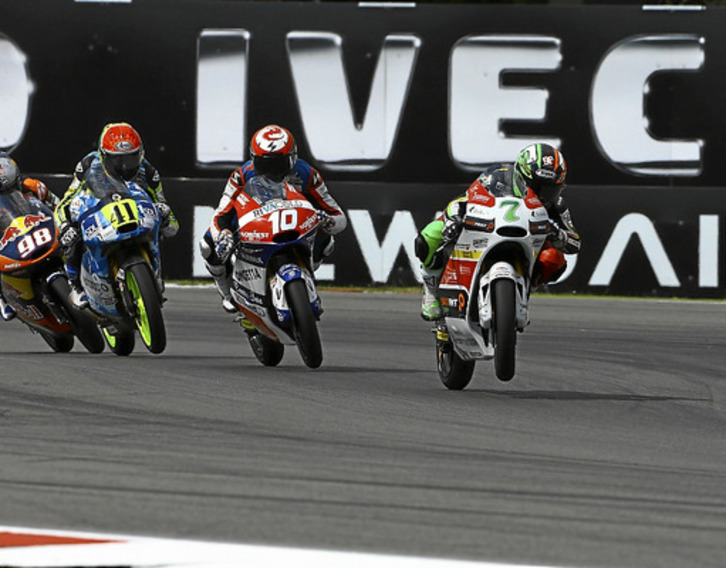 Efrén Vázquez finalizó cuarto en la primera jornada de entrenamientos libres del Gran Premio de Alemania en la categoría de Moto3. El piloto vizcaino paró el crono en 1:27.721, quedándose a 419 milésimas del mejor tiempo logrado por el australiano Jack Miller. El de Rekalde estaba contento tras una positiva toma de contacto con el circuito de Sachsenring: «Hemos hecho un buen entrenamiento, tanto a la mañana como a la tarde. Hemos tratado de mejorar todos los aspectos que podemos de la moto y la verdad es que estamos contentos y satisfechos de cómo está funcionando todo».