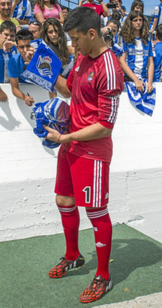 Tan fulgurante trayectoria no pasó desapercibida para un grupo inversor, que se hizo con el 80% de los derechos del jugador en junio pasado y que le ha buscado acomodo en el fútbol del viejo continente como mejor escaparate para una posterior venta. A los dirigentes de la entidad guipuzcoana, la operación les permite cubrir el hueco dejado por Claudio Bravo y no cortar la progresión de los prometedores guardametas que se están fraguando en Zubieta.