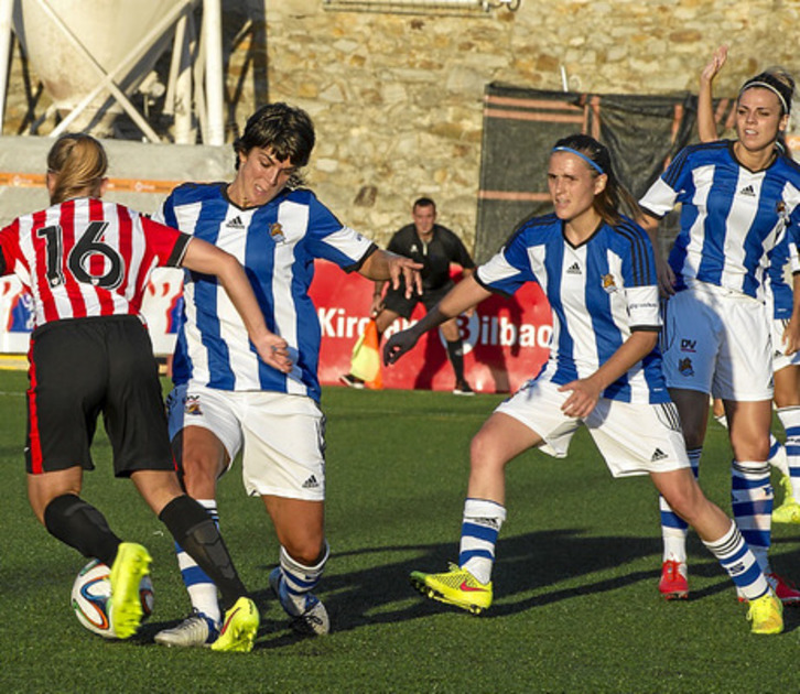 Con un once en el que lucían dos de las incorporaciones veraniegas, María Díaz y Leire Fernández, la Real salió dispuesta a llevar la batuta. A punto estuvo de frustrar sus intenciones el cuadro granota porque, nada más comenzar el encuentro, envió un disparo desde la frontal que se estrelló en el larguero.
