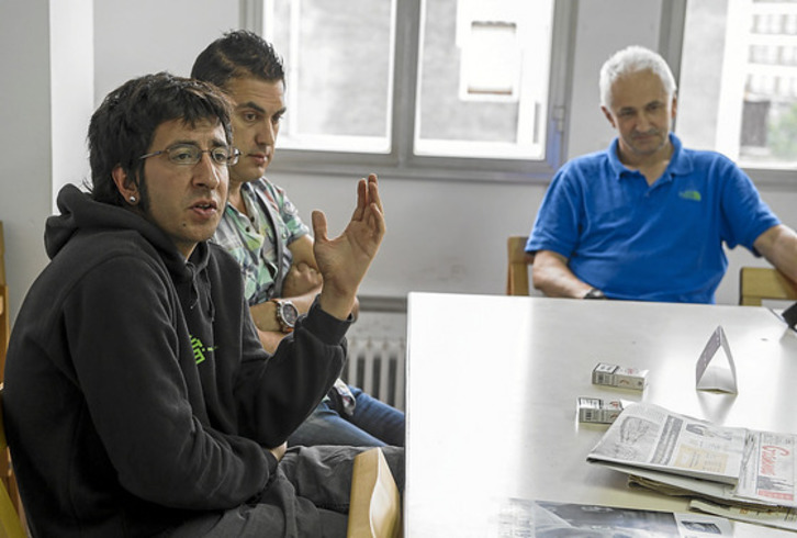 Ander Erkoreka, de LAB, Benito Valbuena, de ELA, y José Ramón Elorriaga, de CCOO, explican a GARA que la dirección de Talleres Gometegui, «que no da la cara ante nosotros, y envía a su emisario», justifica ese plan de multilocalización en base a las pérdidas «que fueron del entorno de 2 millones en 2014, según nos comunicó la empresa».