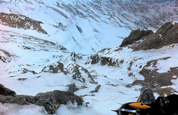 50 metroko soka bat, hainbat friend eta, badaezpada ere bere burua aseguratzeko, izotzerako hainbat torloju. Horixe zen eraman zuen tresneria guztia.