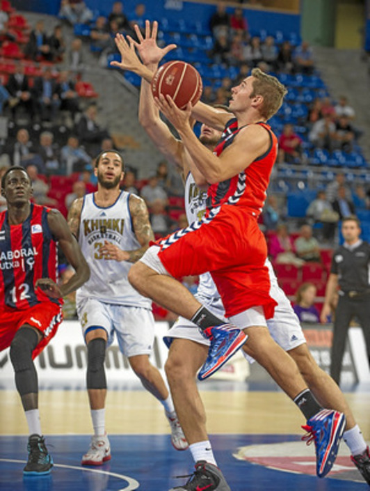 En el acto final el Khimki se dejó llevar en exceso y dos canastas de Fabien Causeur, quien reapareció dando muy buena impresión -8 puntos y 12 de valoración en 12 minutos- pusieron por delante al Laboral Kutxa (67-65, minuto 34). Un parcial de 15-2 en cinco minutos fue contestado por dos triples y dos tiros libres de Popovic, con un mate del imparable Lauvergne, que permitieron volver al duelo al equipo ruso (75-75) con menos de dos minutos por jugar.
