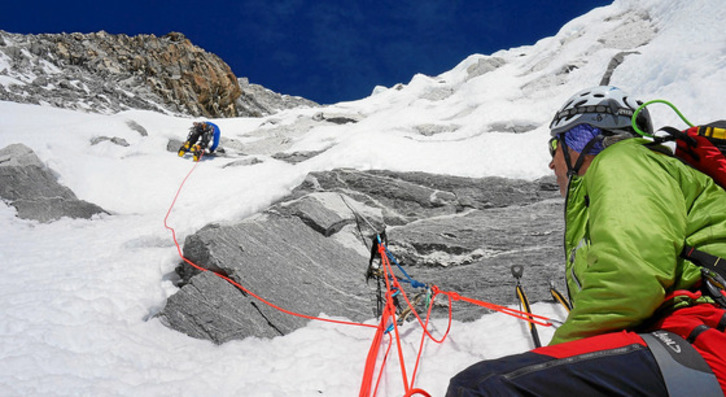 Paretaren sarrerara heltzeko egun bateko ahalegina behar izan zuten. Biharamunean, oso goiz, martxan jarri ziren: «Igoeran zehar baldintza ezberdinekin egin genuen topo. Murruaren sarreran, adibidez, elur sakonean mugitu ginen. Erdialdean, berriz, izotz alpino bikaina eta tarte misto batzuk. Eta goialdean, azkenik, geure erritmoa mantsotu zuen elur freskoa. Egun osoa behar izan genuen ertzera heltzeko, bibak egoki bat bilatzeko eta dendak antolatzeko».