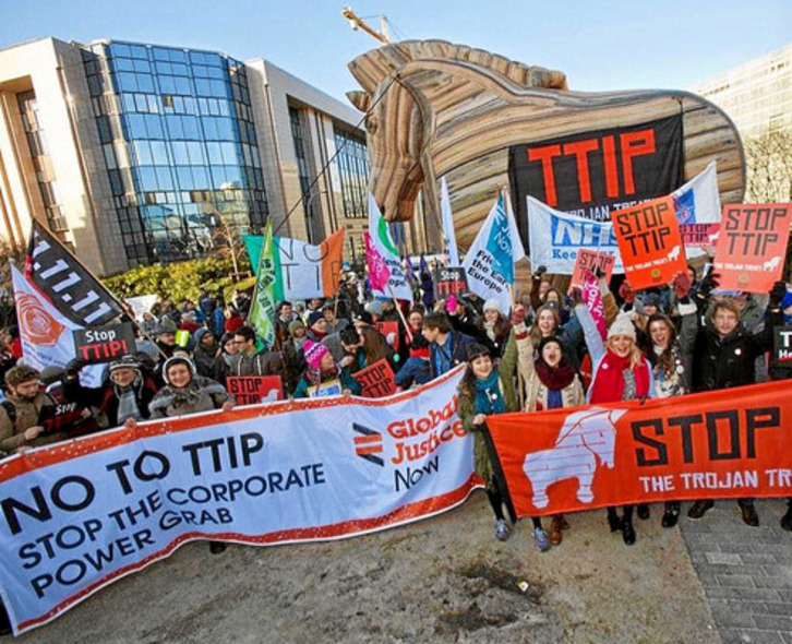 Un reciente informe del Instituto Sindical Europeo (Etui) sobre el tratado transatlántico que negocian Estados Unidos y la Unión Europea -«TTIP: vía rápida a la desregulación y menor protección de la salud y seguridad de los trabajadores de la UE», elaborado por Aida Ponce del Castillo- confirma que las dos potencias al servicio de las grandes transnacionales van a eliminar las restricciones en materia de seguridad y salud en diferentes productos y protocolos. Esta semana en Bruselas se han reunido, de nuevo, las dos partes para seguir cerrando acuerdos en torno a este tratado. Admitieron que deben aportar más transparencia, pero la realidad muestra que se está ocultando el proceso porque «el daño va a ser inmenso para la población, la producción y la salud».