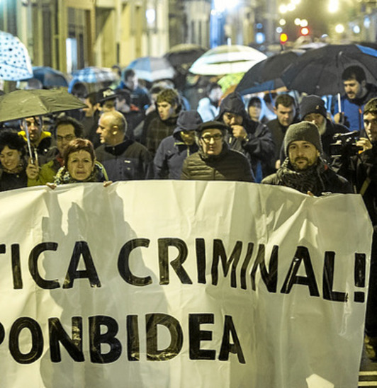 Cientos de personas se manifestaron ayer en Iruñea para denunciar el envío a prisión de Jorge Olaiz. Los congregados destacaron que esta decisión pretende «atacar las oportunidades para la resolución y la paz», y acusaron al PP de «obstaculizar el cambio» en Euskal Herria.