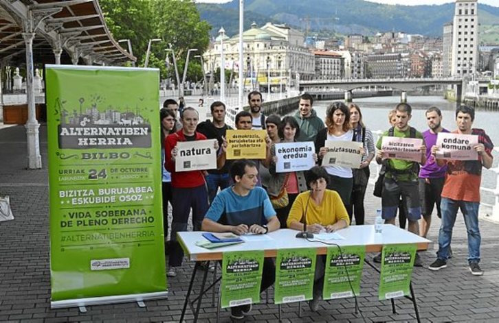 La Carta de Derechos Sociales de Euskal Herria presentó ayer “Alternatiben herria”, una iniciativa que se desarrollará el próximo 24 de octubre en Bilbo con el objetivo de «extender que Euskal Herria tiene alternativas como pueblo y empezar a definir este nuevo modelo social», reivindicaron los agentes.