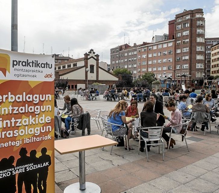 Buena respuesta de los euskaltzales de Barakaldo a la segunda edición de Mintzodromoa, en sesión matutina y vespertina, donde 105 personas por la mañana en el parque de los Hermanos y 70, por la tarde, en la cafetería del CIS, hablaron en euskara sin ningún temor a equivocarse y con afan de superación. La iniciativa de AEK, el Euskaltegi Municipal, la Escuela de Idioma y técnicos municipales de Euskara resultó un éxito viendo la respuesta cosechada.LLuis JAUREGIALTZO | ARGAZKI PRESS