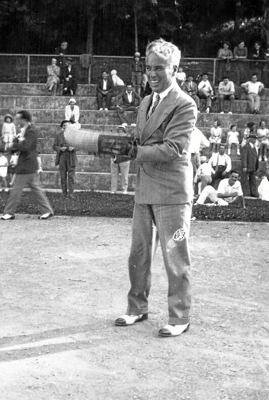 1931ko abuztuaren 17an, “La Gazette de Bayonne” egunkariak Charles Chaplin aktore eta zinema zuzendariak Zuberoako Atharratze herrira egindako bisitaren berri eman zuen bere lehen orrialdean. Izenburu nabarmenduaren arabera, Chaplinek frontoiaren aurrean dantzatu eta euskarazko kanta bat abestu zuen. Beste hedabide batzuek, tartean “Le Figaro”-k, esan zuten Chaplinen lagun Harry d 'Abbadie d' Arrastek, euskal jatorrikoa eta "The Gold Rush" filmean haren zuzendari laguntzailea izan zenak, pilotaren gaineko euskarazko bertso batzuk erakutsi zizkiola eta Chaplinek lagunen aurrean kantatu zituela Atharratzeko frontoian. “Le Figaro” egunkariak berak zioenez, “City Lights” filmak bost hilabete zeramatzan zinema aretoetan. Argazkian Charles Chaplin ageri da, 1931ko abuztuaren 16an, Atharratzeko frontoian zesta-punta partida bat hasi baino lehen, xistera bat eskuan argazkilariari begira.