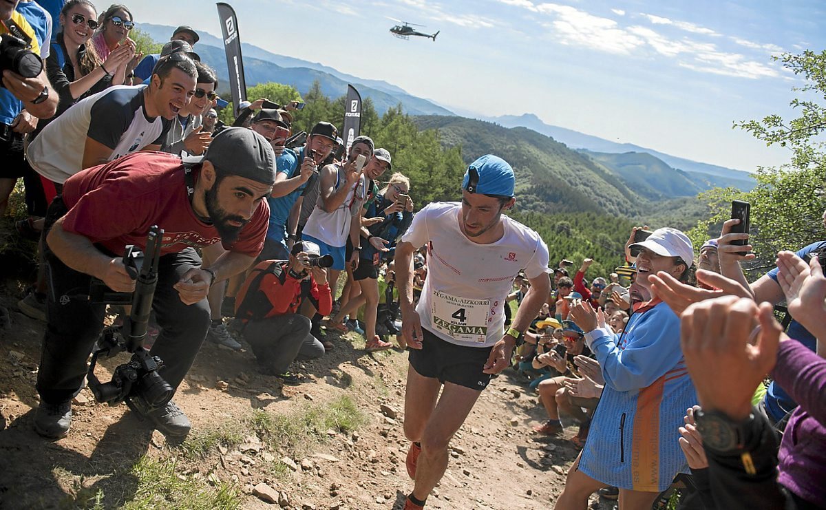 Bai, baina onartu behar dut alde horretatik gero eta desberdintasun gutxiago dagoela beste lasterketa batzuekin alderatuta. Lasterketak oihartzun handia hartu du eta mundu guztiko kazetariak etortzen dira, eta horrek zaildu egiten du harreman hori. Baina egia da Zegamako herritarrak ez direla ibiltzen fanatikoen moduan korrikalarien atzetik, nahiko lasai uzten ditugu, eta horrek aukera ematen die lasterketa ondoren garagardo pare bat lasai hartzeko nahi badute. Herri txiki bateko giro hori asko eskertzen dute. Eta Sancti Spiritu edo Aizkorri jendez beteta dagoenean ere, ez da bakarrik buila eta animoa. Argazkietan fijatzen bazara ikusleen aurpegietan ere nabaritu egiten da nola bizi duten une hori. Korrikalarien eta zaleen artean feeling berezi bat sortzen da eta hori nabaritu egiten da. Oraintxe datorkit argazki bat burura, Florian Reichert alemaniarrarena, zeruan balego bezala besoak jasota. Horrek ematen dizu poza eta lanean jarraitzeko gogoa.