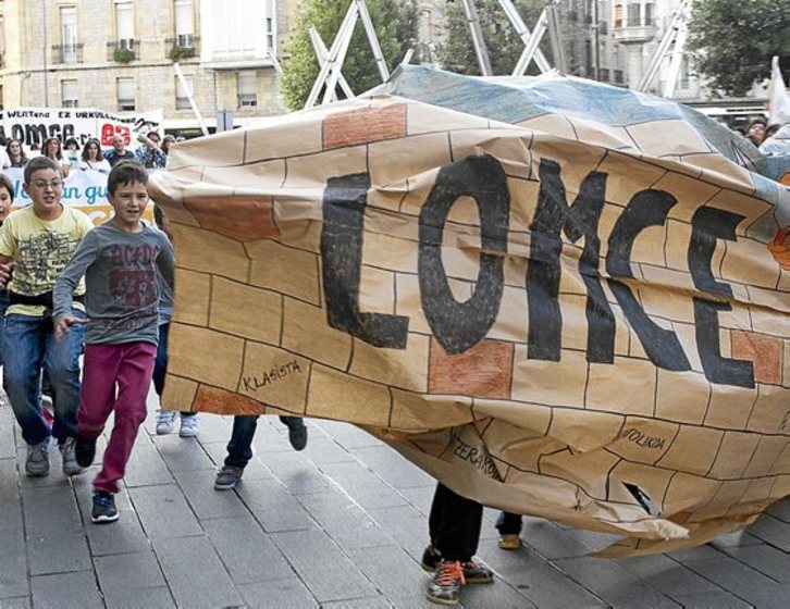 Araba, Bizkai, Gipuzkoa eta Nafarroako herrialdeetan eskoletako ildo nagusiak Espainiako Gobernuak diseinatzen eta ezartzen ditu. Frankismoaren ondoren igaro diren 37 urteetan, hezkuntzari dagozkion zazpi lege organiko ipini ditu indarrean. Azkena, ikasturte honen hasieran bertan, Hezkuntza Kalitatearen Hobekuntzarako Lege Organikoa –Wert legea–, LOMCE gisa ezagunagoa. Lege organiko hori, 2013ko urte amaieran onartu, eta haren ebazpena 2014ko uztailean argitaratu zuen Madrilek. Tokian tokiko administrazioek, ordea, ez zuten dekreturik idatzi LOMCEa aplikatzeko edo saihesteko. Ez omen zuten denborarik izan.