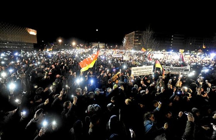 Alemaniako Pegida mugimendu islamofoboa, ordea, bai Espainiako hedabideetan bai Euskal Herrikoetan albiste izan da. «Mendebaldearen Islamizazioaren Aurkako Europar Patriotikoak» astelehenero biltzen dira, Dresdenen. Asteon manifestaldirik izan ez dela albistea izan da; Lutz Bachmann buruzagia ustez mehatxatuta dagoelako gertatu da. Alemaniarrentzat, ordea, Estatuak ez du faxismoa borrokatzeko borondate nahikorik. Aste honetako Pegida bertan behera geratu zen hedabideetan topatu ez dugun beste arrazoi bategatik ere: aurreko astean, Pegidak Dresdenen egin zuen azken manifestazioarekin batera, Khaled Idris Bahray, Eritreako 20 urteko gaztea, kolpez hilda agertu zen. Tokiko hedabideek salatu arte, baina, Poliziak ez zuen odoletan agertu zen gaztearen gorpuan «indarkeria zantzurik» antzeman. Pegidaren asteleheneroko manifestazioak direla-eta, Dresdenen errefuxiatuak ez dira kalera ateratzen eta, ateraz gero, beti taldean doaz, “TAZ” egunkariak jaso bezala.