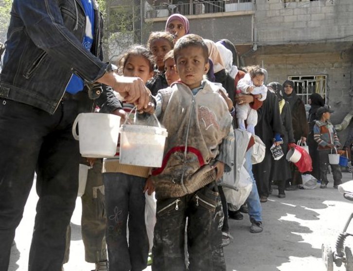 Horregatik da hain indartsua UNRWA agentziak banatu eta GARA egunkariak joan den astean argitara emandako argazkia. Milaka lagun ikus zitezkeen hondakinen artean, NBEk eramandako elikagaien zain, goseak amorratzen. Mundu osora iritsi zen irudi ikusgarri bezain esanguratsua.