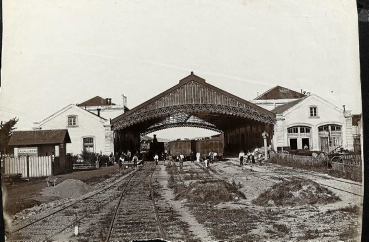 1856ko maiatzean Espartero jenerala Iruñera iritsi zen Iruñea-Tafalla-Caparroso-Zaragoza trenbidearen lanen inaugurazioan buru izatera. Hainbat herritan ez zuten begi onez ikusten trenbidea, Caparroson kasu. Ondorioz, herritik 2 kilometrora eraiki behar izan zuten tren geltokia. 1860an inauguratu zuen Zaragozatik Iruñerako Trenbidearen Konpainiak Nafarroako hiriburuko geltokia. Bertatik abiatzen ziren ibilbidea egiten zuten bi trenak, eta 1865ean Zaragoza-Bartzelona linearekin ere bat egin zuten. II. Gerra Karlistaren baitan, trenbidean kokatuta zeuden hainbat zubi saboteatu zituzten, bai eta ia tren geltoki guztiak erre ere. Iruñeko tren geltokiaren argazkia 1867an hartu zuen valentziarra zen baina Madrilen bizi zen Jose Martinez Sanchez (1807-1874) argazkilariak. Obra publikoen argazkiekin osatu zuen galeria Parisen 1867an egin zen mundu mailako erakusketan aurkeztu zuen.