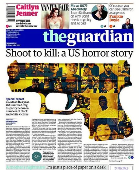 ‘The Guardian” egunkariak AEBetan poliziak azken urtean hil dituen 464 herritar afroamerikarren argazkiak lehen orrira ekarri ditu (2015/06/02), azken hilketaren berri zuzena eman barik. ‘The Guardian”-ek erakutsi du hilketen berri ematean ez dela kasu bakoitza aztertu behar, denek batera errealitatea azaltzen dutelako. Emakumeak hiltzea ez da kasualitatea, jokabide matxistaren azken urratsa baizik. Juan Carlos Aguilar hiltzailearen kasuan, adibidez, hedabideek ez zuten aipatu tratu txarrengatik bikotearengandik banandu zela eta ez duela harremanik seme-alabekin. Larriagoa da epaiketan bertan Aguilarren bikotekideak aitortutakoa jaso ez izana: sexurik izan nahi ez zuenean, bere alaba bortxatzeko mehatxua egiten ziola.